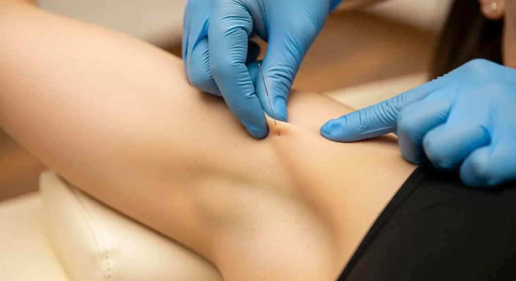 Therapist performing dry needling technique